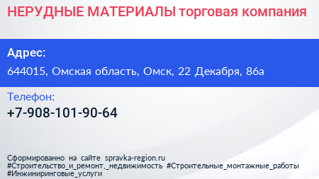НЕРУДНЫЕ МАТЕРИАЛЫ, торговая компания по адресу 644015, Омская область, Омск, 22 Декабря, 86а в дальнейшем Организация, размещена в следующих категориях: