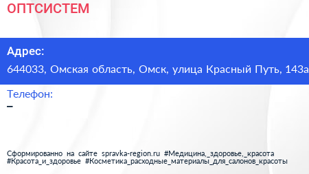 ОПТСИСТЕМ по адресу 644033, Омская область, Омск, улица Красный Путь, 143а в дальнейшем Организация, размещена в следующих категориях: