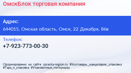 ОмскБлок, торговая компания по адресу 644015, Омская область, Омск, 22 Декабря, 86в в дальнейшем Организация, размещена в следующих категориях: