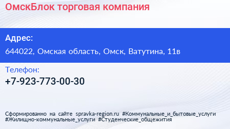 ОмскБлок, торговая компания по адресу 644022, Омская область, Омск, Ватутина, 11в в дальнейшем Организация, размещена в следующих категориях: