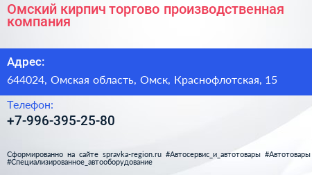 Омский кирпич, торгово-производственная компания по адресу 644024, Омская область, Омск, Краснофлотская, 15 в дальнейшем Организация, размещена в следующих категориях: