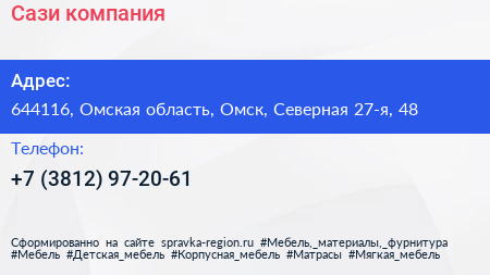 Сази, компания по адресу 644116, Омская область, Омск, Северная 27-я, 48 в дальнейшем Организация, размещена в следующих категориях: