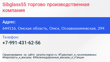 Sibglass55, торгово-производственная компания по адресу 644116, Омская область, Омск, Осоавиахимовская, 294 в дальнейшем Организация, размещена в следующих категориях: