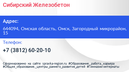 Сибирский Железобетон по адресу 644094, Омская область, Омск, Загородный микрорайон, 15 в дальнейшем Организация, размещена в следующих категориях: