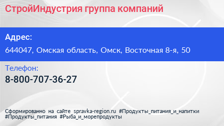 СтройИндустрия, группа компаний по адресу 644047, Омская область, Омск, Восточная 8-я, 50 в дальнейшем Организация, размещена в следующих категориях: