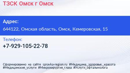 ТЗСК Омск, г. Омск по адресу 644122, Омская область, Омск, Кемеровская, 15 в дальнейшем Организация, размещена в следующих категориях: