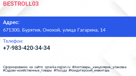 BESTROLL03 по адресу 671300, Бурятия, Онохой, улица Гагарина, 14 в дальнейшем Организация, размещена в следующих категориях: