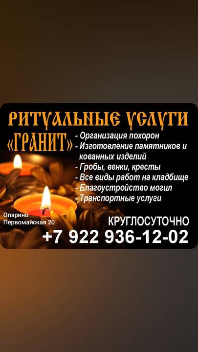 Хотим обратить ваше внимание, на то, что у Организации есть сайт https://vk.com/rituloparino, поэтому для актуализации контактных данных советуем его посетить. В социальных сетях обычно дублируют информацию с официального сайта, тем не менее, социальные сети это быстрый отклик клиентов и посетителей, вы можете найти ответы на волнующие вас вопросы, советуем также заглянуть и в соц. сети: