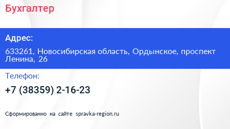 Бухгалтер по адресу 633261, Новосибирская область, Ордынское, проспект Ленина, 26 в дальнейшем Организация, размещена в следующих категориях: