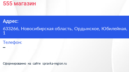555, магазин по адресу 633266, Новосибирская область, Ордынское, Юбилейная, 1 в дальнейшем Организация, размещена в следующих категориях: