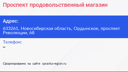 Проспект, продовольственный магазин по адресу 633261, Новосибирская область, Ордынское, проспект Революции, 68 в дальнейшем Организация, размещена в следующих категориях: