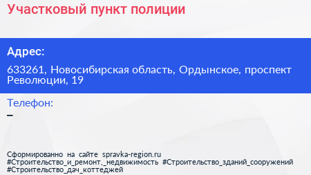 Участковый пункт полиции по адресу 633261, Новосибирская область, Ордынское, проспект Революции, 19 в дальнейшем Организация, размещена в следующих категориях: