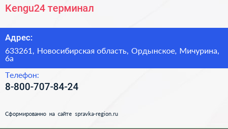 Kengu24, терминал по адресу 633261, Новосибирская область, Ордынское, Мичурина, 6а в дальнейшем Организация, размещена в следующих категориях: