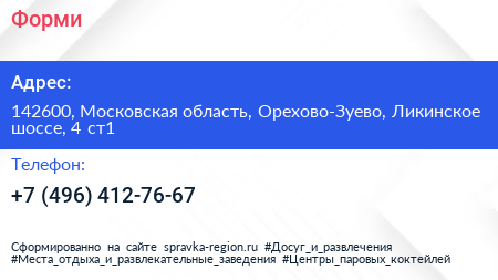 Форми по адресу 142600, Московская область, Орехово-Зуево, Ликинское шоссе, 4 ст1 в дальнейшем Организация, размещена в следующих категориях: