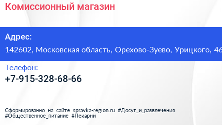 Комиссионный магазин по адресу 142602, Московская область, Орехово-Зуево, Урицкого, 46 в дальнейшем Организация, размещена в следующих категориях: