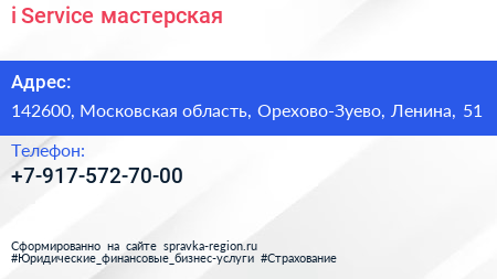 i-Service, мастерская по адресу 142600, Московская область, Орехово-Зуево, Ленина, 51 в дальнейшем Организация, размещена в следующих категориях: