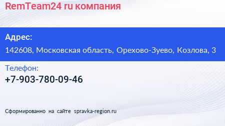 RemTeam24.ru, компания по адресу 142608, Московская область, Орехово-Зуево, Козлова, 3 в дальнейшем Организация, размещена в следующих категориях: