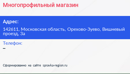 Многопрофильный магазин по адресу 142611, Московская область, Орехово-Зуево, Вишневый проезд, 3а в дальнейшем Организация, размещена в следующих категориях: