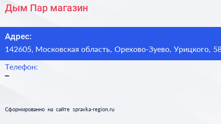 Дым & Пар, магазин по адресу 142605, Московская область, Орехово-Зуево, Урицкого, 58 в дальнейшем Организация, размещена в следующих категориях: