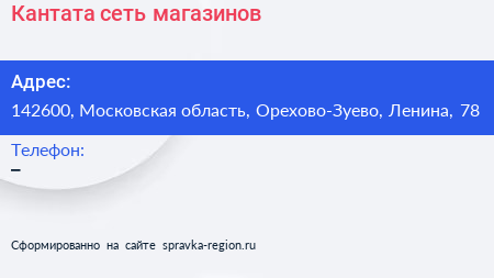Кантата, сеть магазинов по адресу 142600, Московская область, Орехово-Зуево, Ленина, 78 в дальнейшем Организация, размещена в следующих категориях: