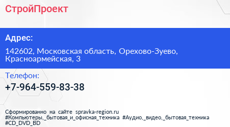 СтройПроект по адресу 142602, Московская область, Орехово-Зуево, Красноармейская, 3 в дальнейшем Организация, размещена в следующих категориях: