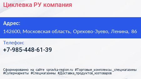 Циклевка РУ, компания по адресу 142600, Московская область, Орехово-Зуево, Ленина, 86 в дальнейшем Организация, размещена в следующих категориях: