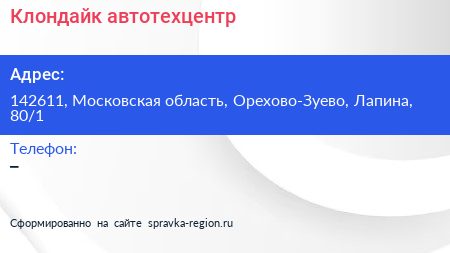 Клондайк, автотехцентр по адресу 142611, Московская область, Орехово-Зуево, Лапина, 80/1 в дальнейшем Организация, размещена в следующих категориях: