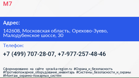 М7 по адресу 142608, Московская область, Орехово-Зуево, Малодубенское шоссе, 30 в дальнейшем Организация, размещена в следующих категориях: