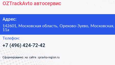 OZTrackAvto, автосервис по адресу 142601, Московская область, Орехово-Зуево, Московская, 11а в дальнейшем Организация, размещена в следующих категориях: