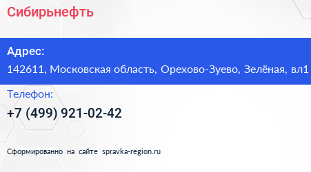 Сибирьнефть по адресу 142611, Московская область, Орехово-Зуево, Зелёная, вл1 в дальнейшем Организация, размещена в следующих категориях: