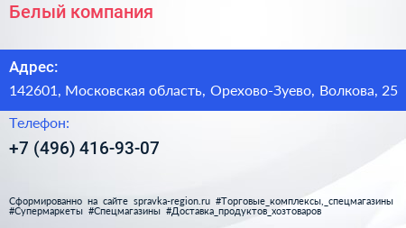 Белый, компания по адресу 142601, Московская область, Орехово-Зуево, Волкова, 25 в дальнейшем Организация, размещена в следующих категориях: