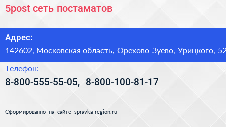 5post, сеть постаматов по адресу 142602, Московская область, Орехово-Зуево, Урицкого, 52 в дальнейшем Организация, размещена в следующих категориях: