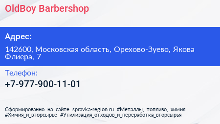 OldBoy Barbershop по адресу 142600, Московская область, Орехово-Зуево, Якова Флиера, 7 в дальнейшем Организация, размещена в следующих категориях: