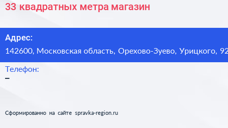 33 квадратных метра, магазин по адресу 142600, Московская область, Орехово-Зуево, Урицкого, 92 в дальнейшем Организация, размещена в следующих категориях: