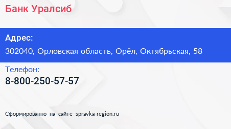 Банк Уралсиб по адресу 302040, Орловская область, Орёл, Октябрьская, 58 в дальнейшем Организация, размещена в следующих категориях: