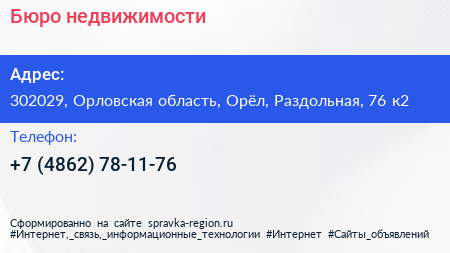 Бюро недвижимости по адресу 302029, Орловская область, Орёл, Раздольная, 76 к2 в дальнейшем Организация, размещена в следующих категориях: