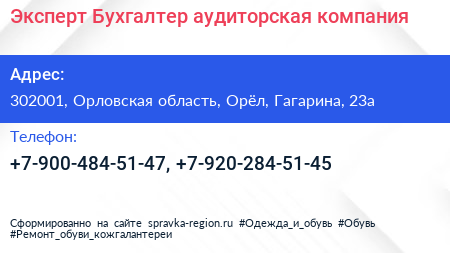 Эксперт Бухгалтер, аудиторская компания по адресу 302001, Орловская область, Орёл, Гагарина, 23а в дальнейшем Организация, размещена в следующих категориях: