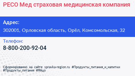 РЕСО-Мед, страховая медицинская компания по адресу 302001, Орловская область, Орёл, Комсомольская, 32 в дальнейшем Организация, размещена в следующих категориях: