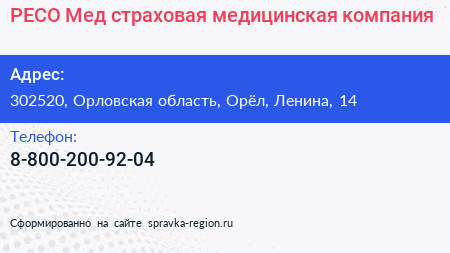 РЕСО-Мед, страховая медицинская компания по адресу 302520, Орловская область, Орёл, Ленина, 14 в дальнейшем Организация, размещена в следующих категориях:
