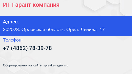 ИТ Гарант, компания по адресу 302028, Орловская область, Орёл, Ленина, 17 в дальнейшем Организация, размещена в следующих категориях: