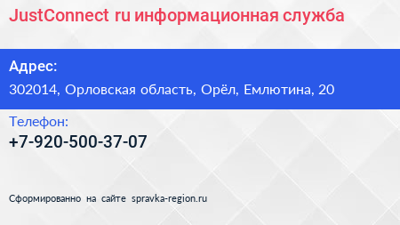 JustConnect.ru, информационная служба по адресу 302014, Орловская область, Орёл, Емлютина, 20 в дальнейшем Организация, размещена в следующих категориях: