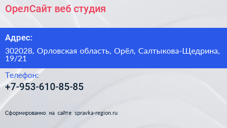 ОрелСайт, веб-студия по адресу 302028, Орловская область, Орёл, Салтыкова-Щедрина, 19/21 в дальнейшем Организация, размещена в следующих категориях:
