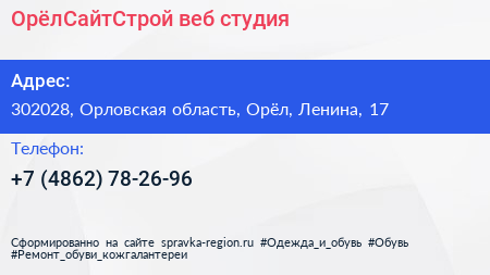 ОрёлСайтСтрой, веб-студия по адресу 302028, Орловская область, Орёл, Ленина, 17 в дальнейшем Организация, размещена в следующих категориях: