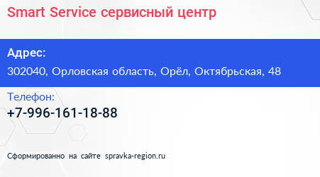 Smart Service, сервисный центр по адресу 302040, Орловская область, Орёл, Октябрьская, 48 в дальнейшем Организация, размещена в следующих категориях: