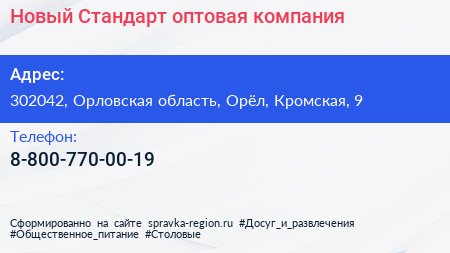 Новый Стандарт, оптовая компания по адресу 302042, Орловская область, Орёл, Кромская, 9 в дальнейшем Организация, размещена в следующих категориях: