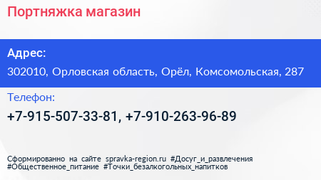 Портняжка, магазин по адресу 302010, Орловская область, Орёл, Комсомольская, 287 в дальнейшем Организация, размещена в следующих категориях: