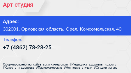 Арт-студия по адресу 302001, Орловская область, Орёл, Комсомольская, 40 в дальнейшем Организация, размещена в следующих категориях: