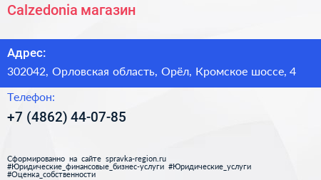 Calzedonia, магазин по адресу 302042, Орловская область, Орёл, Кромское шоссе, 4 в дальнейшем Организация, размещена в следующих категориях: