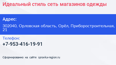 Идеальный стиль, сеть магазинов одежды по адресу 302040, Орловская область, Орёл, Приборостроительная, 21 в дальнейшем Организация, размещена в следующих категориях: