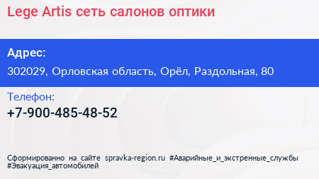 Lege Artis, сеть салонов оптики по адресу 302029, Орловская область, Орёл, Раздольная, 80 в дальнейшем Организация, размещена в следующих категориях: